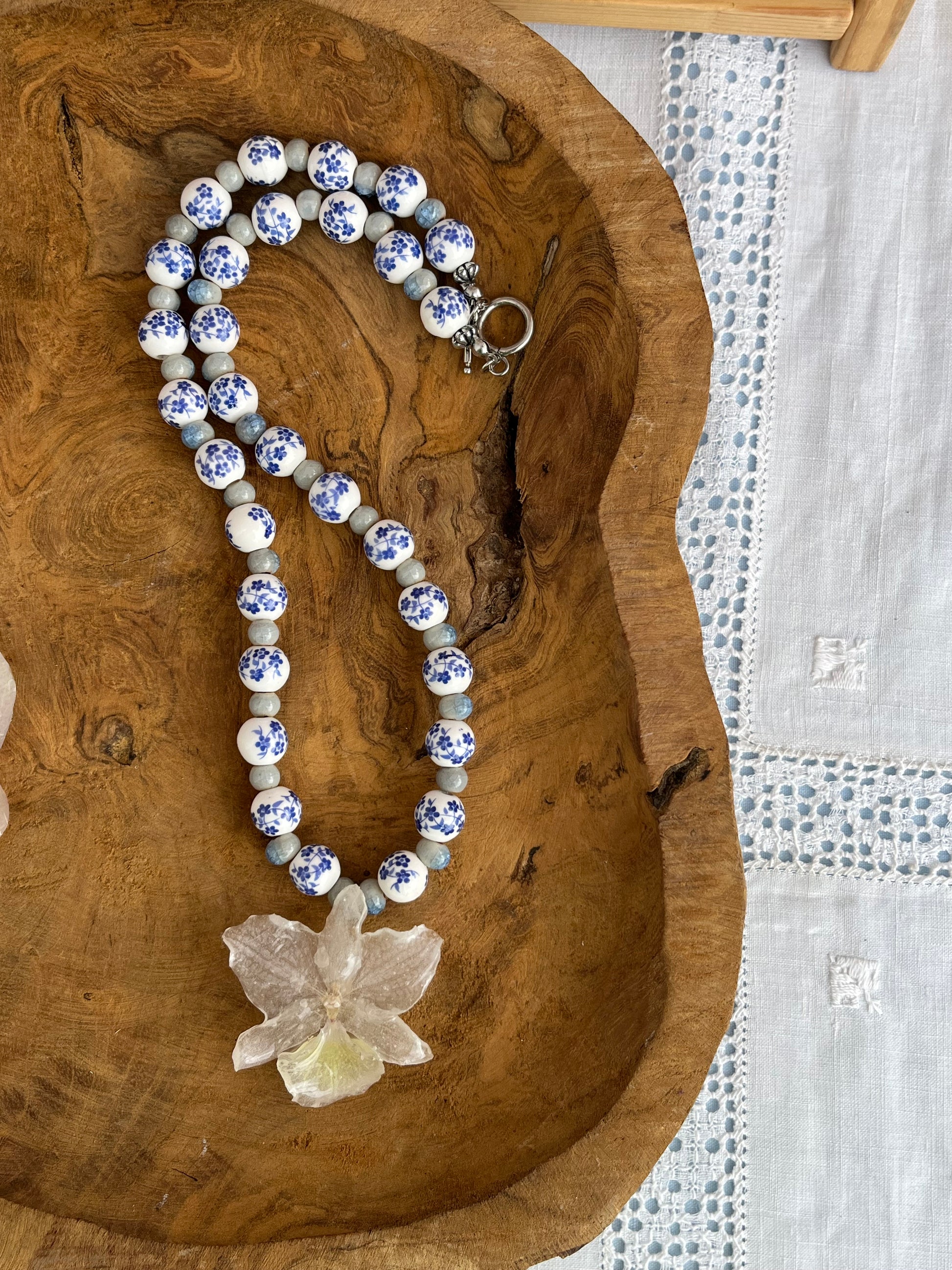 Orquídea dendrobium, collar de cuentas de cerámica